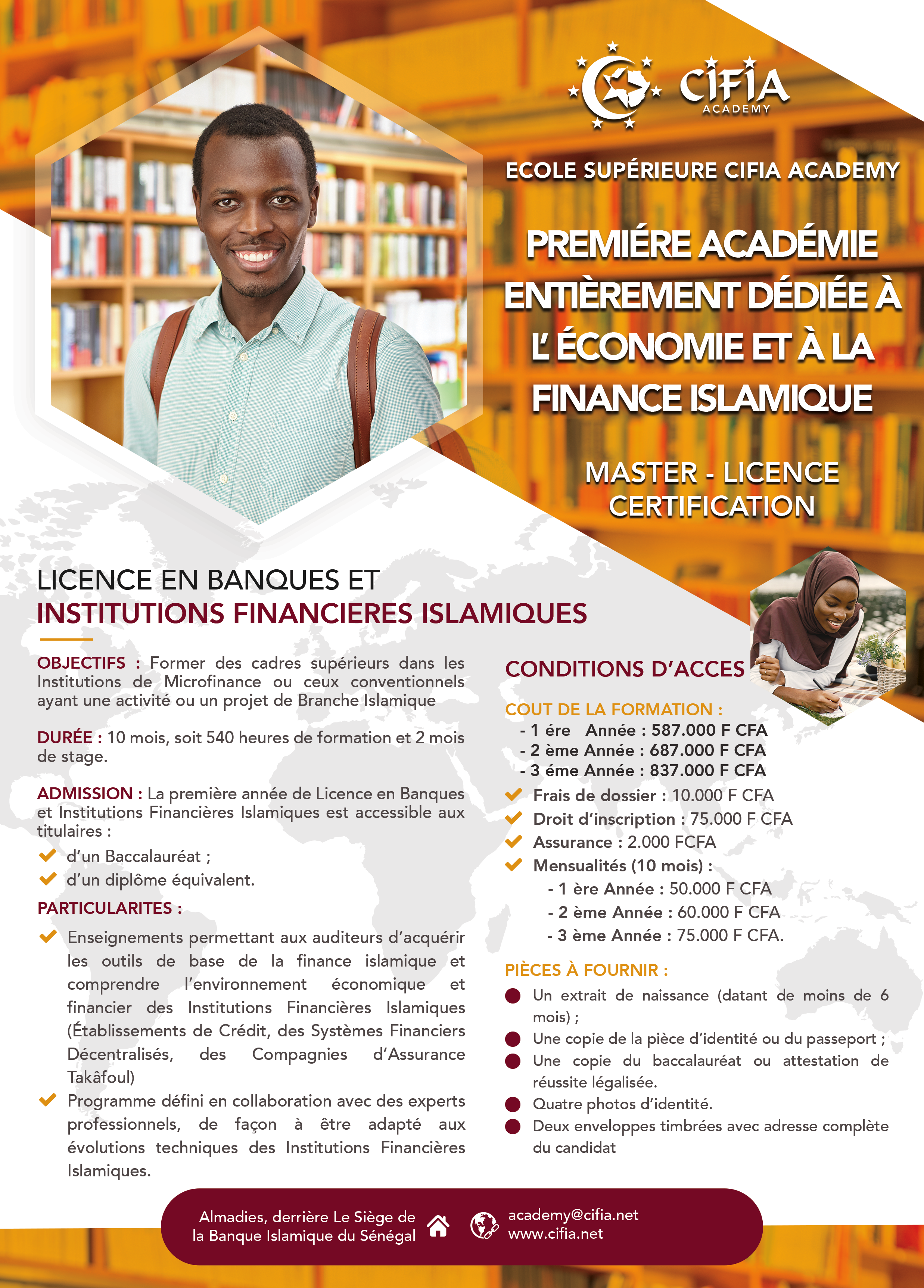Admission : La première année de Licence en Banques et Institutions Financières Islamiques est accessible aux titulaires :